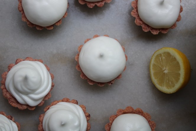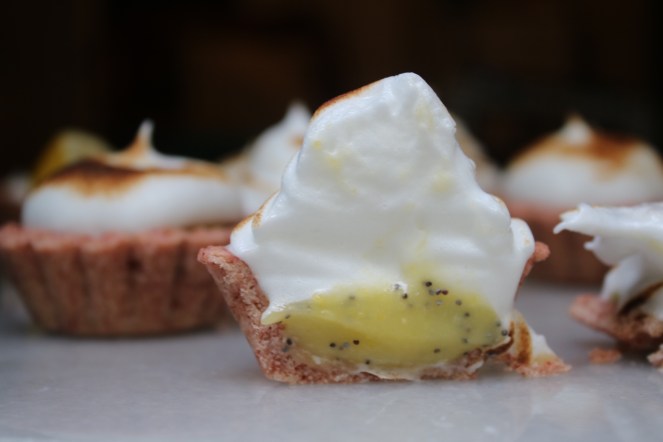 Fill to your hearts content, but make sure that you leave enough exposed tart shell to have the meringue seal against. It’ll keep the meringue from “weeping” or starting to break down if you are storing them in the fridge. Why? Haven’t figured that out yet, but I’ll report back when I know more.