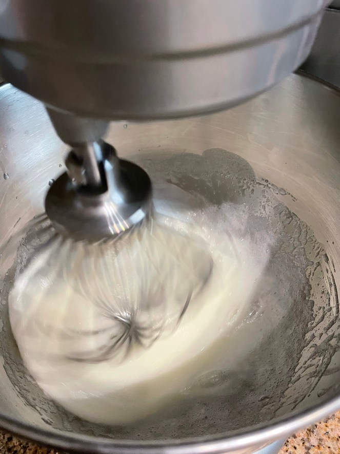 Never ones to be shown up, the egg whites dance around until they’ve transformed in to snowy peaks.