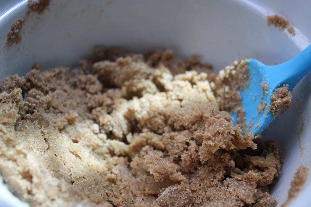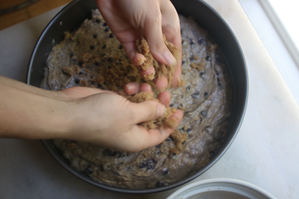 Another reason I love crumbles so much – you gotta use your hands! You’re creating a craggy mountain range on top of your cake.