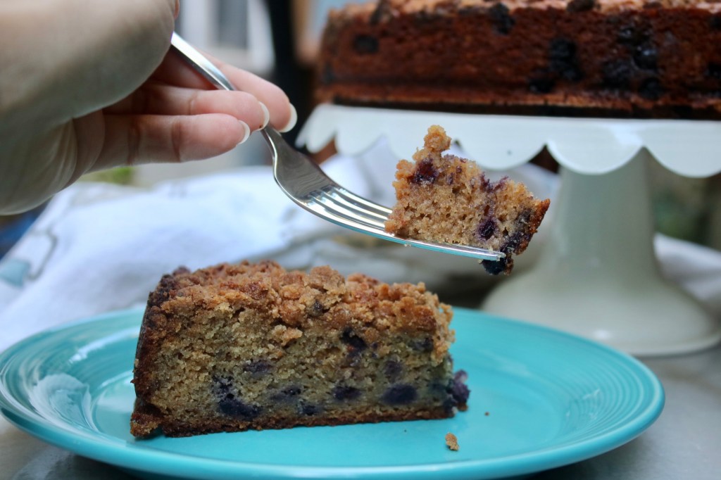 Sweet bursts of blueberry, a soft crumb and a nutty rich crumble topping that caramelized a little bit on the edges. Mary Berry would be so proud that the fruit was evenly suspended and not all hanging out at the bottom of the cake. (I feel like I have to shout out the dense whole wheat flour batter for that magic trick.)