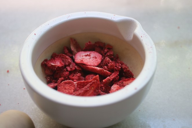 While they bake, time to whip up some frosting! Freeze-dried fruit is my favorite discovery of the past year and may or may not use them in all my bakes going forward. You get all the flavor and color without messing with the consistency of your batter, glaze or frosting. They’re so magical!