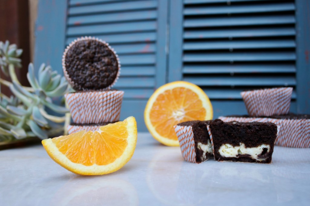 Who needs frosting when you can have a luscious orange chocolate chip cheesecake filling? 220: Orange Chocolate Tuxedo Cupcakes