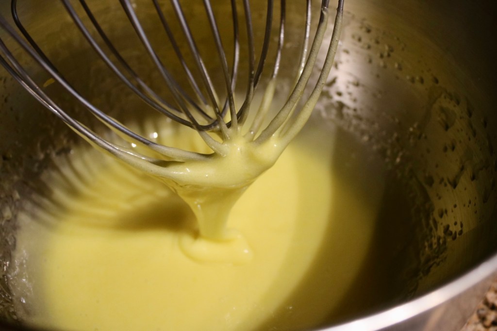 And voila! Look how much thicker it is with just time and air added in! Not quite as thick as a cake batter with butter as the base, but pretty close.