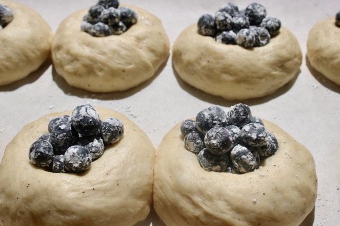 Almost like a bialy! But for blueberries instead of onions. (Don’t punch all the way through – you gotta trust that the indentation you’ve made will stay.)