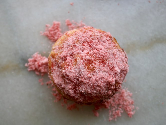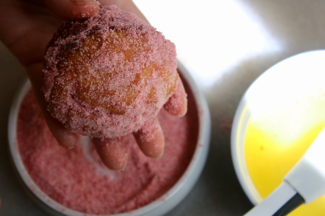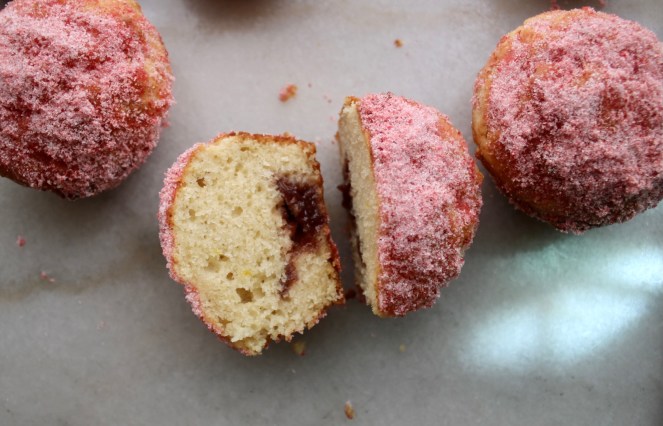 Especially a doughnut doused in sparkly strawberry sugar and filled with strawberry grapefruit jam.