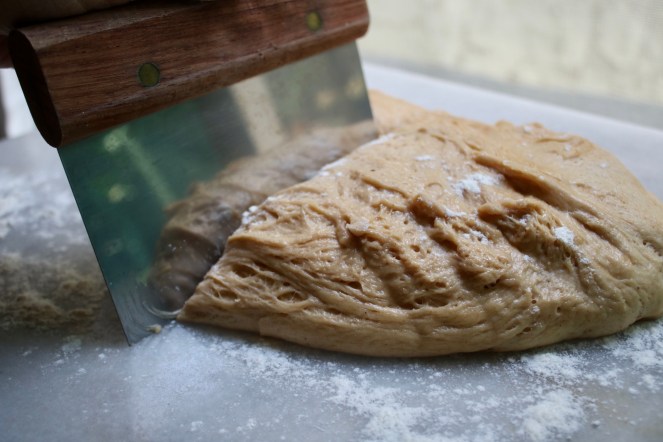 Wave your magic wand and transform your cubes of butter into chunks the brioche dough can actually absorb. Did you know that the shape of butter on the East Coast and West Coast is completely different? I grew up with short, squat sticks of butter, but apparently it’s more common to find long skinny sticks of butter in East Coast grocery stores.