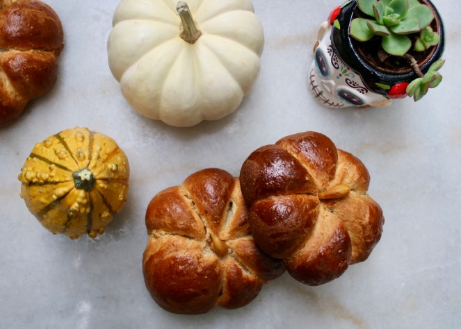 With Halloween on a Sunday this year, you gotta bring your brunch game up a spooky notch or two. May I present: a pumpkin-shaped brioche!
