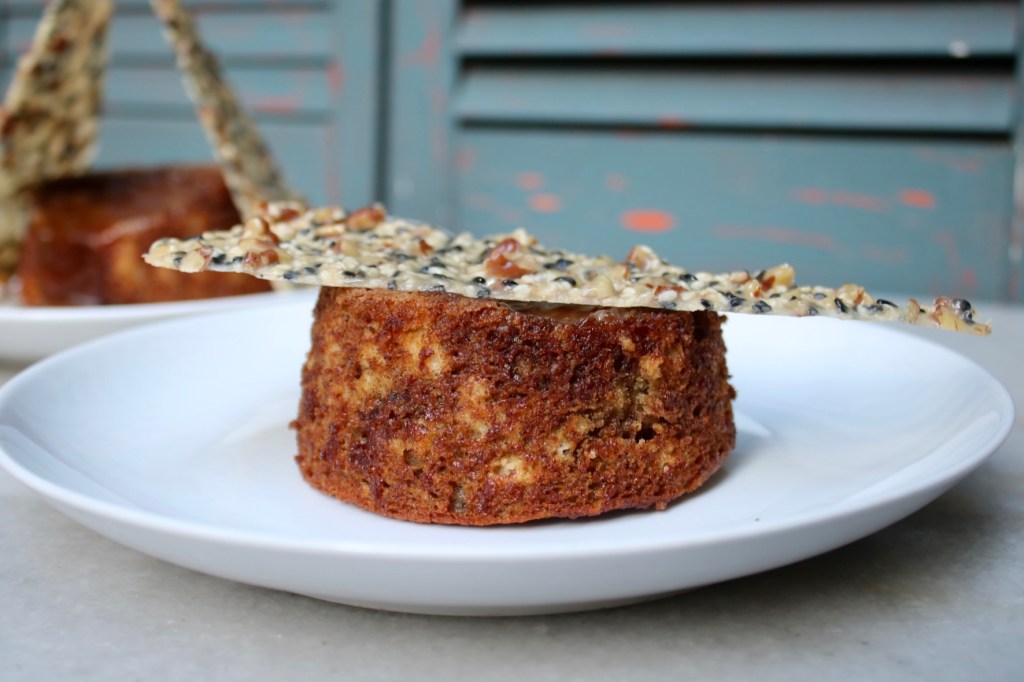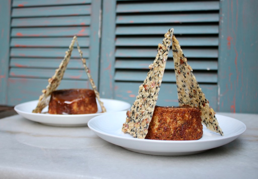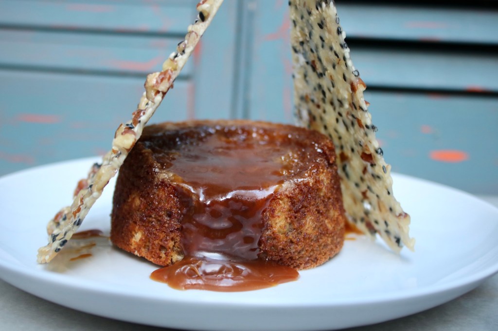 Ok ok, I finally understand the joy of a classic British sticky toffee pudding. A light sponge cake with puréed dates and caramel cascading down the sides. In case your sweet tooth needs a break in this dessert-heavy season, the sesame tuiles are a perfect crunchy bite.