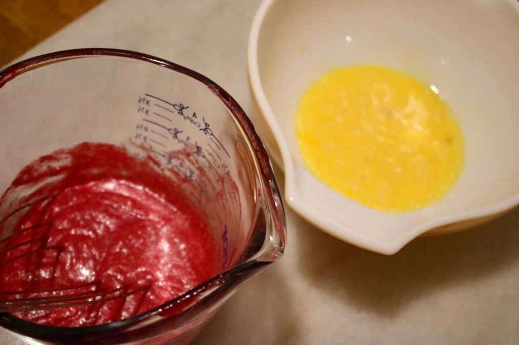 The recipe suggested immersion blending the cranberry mixture to get a stronger color: 10/10 would recommend! I’d like to think it helps with the flavor as well – you’re sieving out less of the fruit.