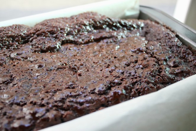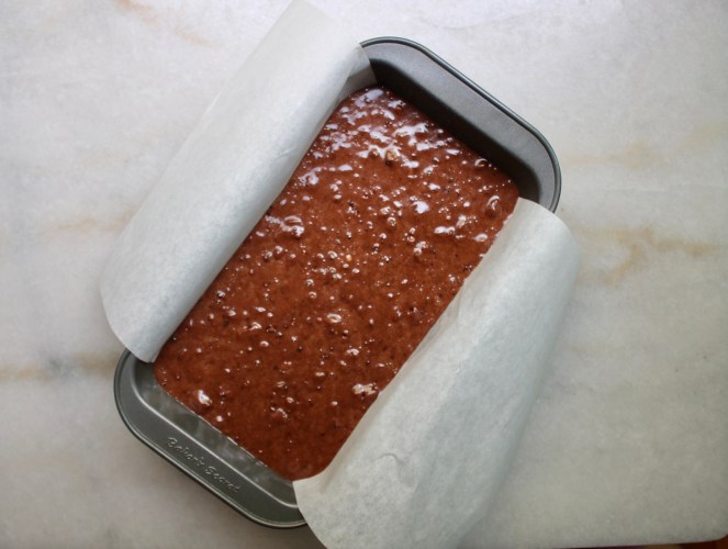 Parchment paper to the rescue! This is a soft cake with a delicate crumb that is grumpy about leaving its cozy pan. Plan ahead and wallpaper that pan.