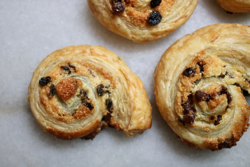 Have you ever been completely surprised by an ingredient list? I’ve been eating these yummy spirals for years, always imagining the filling as a thin layer of pastry cream. Turns out it’s actually frangipane! It’s rich and creamy, perfectly complimenting the flaky pastry and tart raisins.