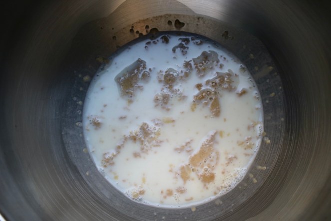 My yeast wasn’t being very cooperative, but I decided to go with it anyway. It’s usually foamier than this after ten minutes, but the mornings have been pretty chilly for the Bay Area. I give full permission to blame the weather if your yeast isn’t ready to party.