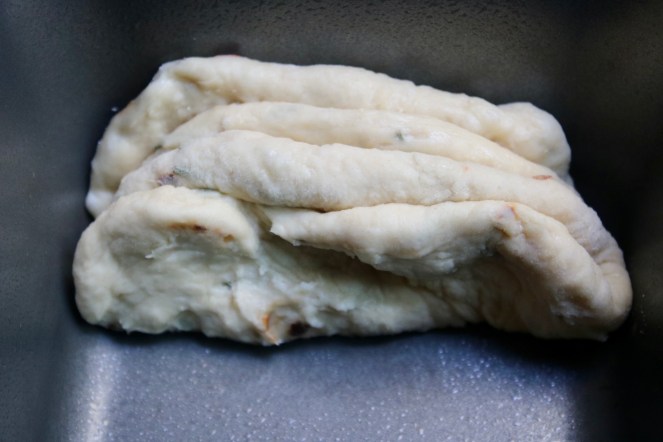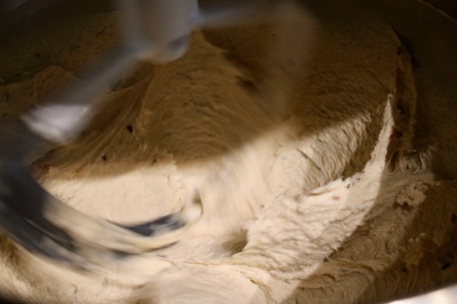 It’s such a soft dough that I actually replaced the dough hook with the bowl scraper and just mixed for a short period of time before dumping it out to knead by hand.