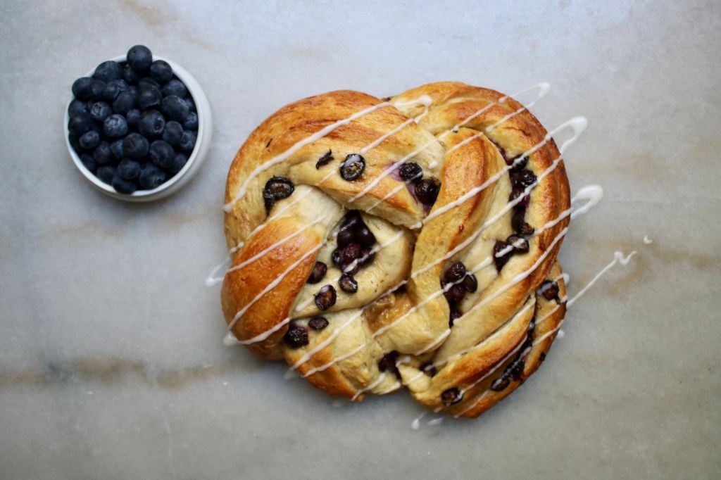 Everyone’s weekend needs a giant, fluffy iced bun with blueberry polka dots. # 261: Blueberry Lime Couronne