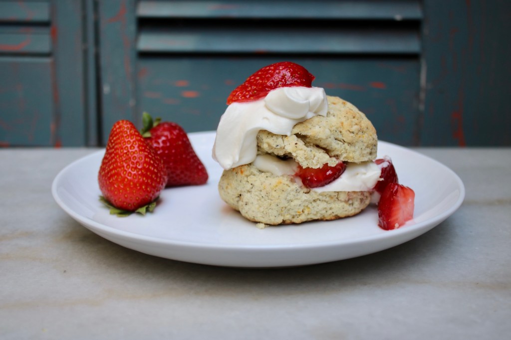 Shortcake roll call: Sliced strawberries with a sprinkle of sugar? Present. Whipped cream with vanilla and powdered sugar? Yes ma’am.