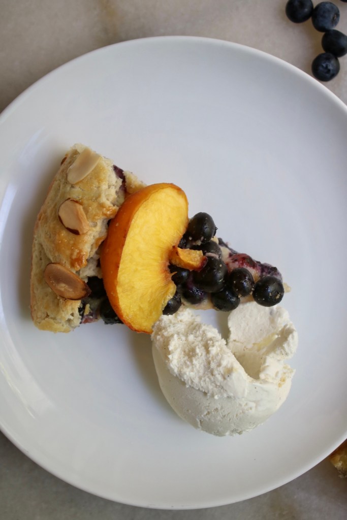 Peaches and blueberries and frangipane, oh my! I’m still more of a yellow nectarine girl, but a ripe peach is something special. I ap-peach-iate how they compliment the floral, mellow blueberries and melt into their almond custard pillow.
