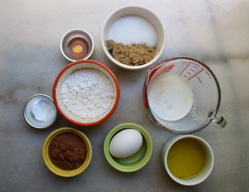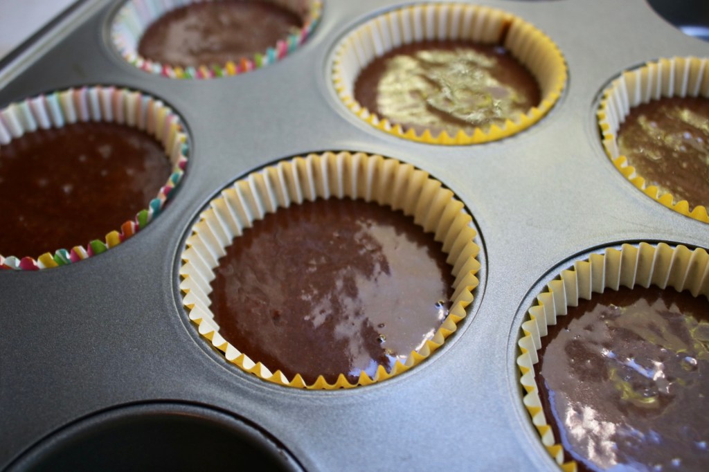 I used my favorite chocolate cupcake base, but swapped out the orange olive oil for regular. Orange would have been delicious but I’m sadly out at the moment. Good thing my birthday is coming up! (Subtle hint, huh?)