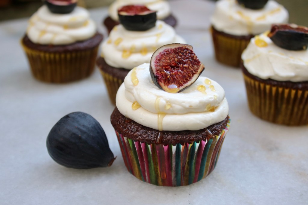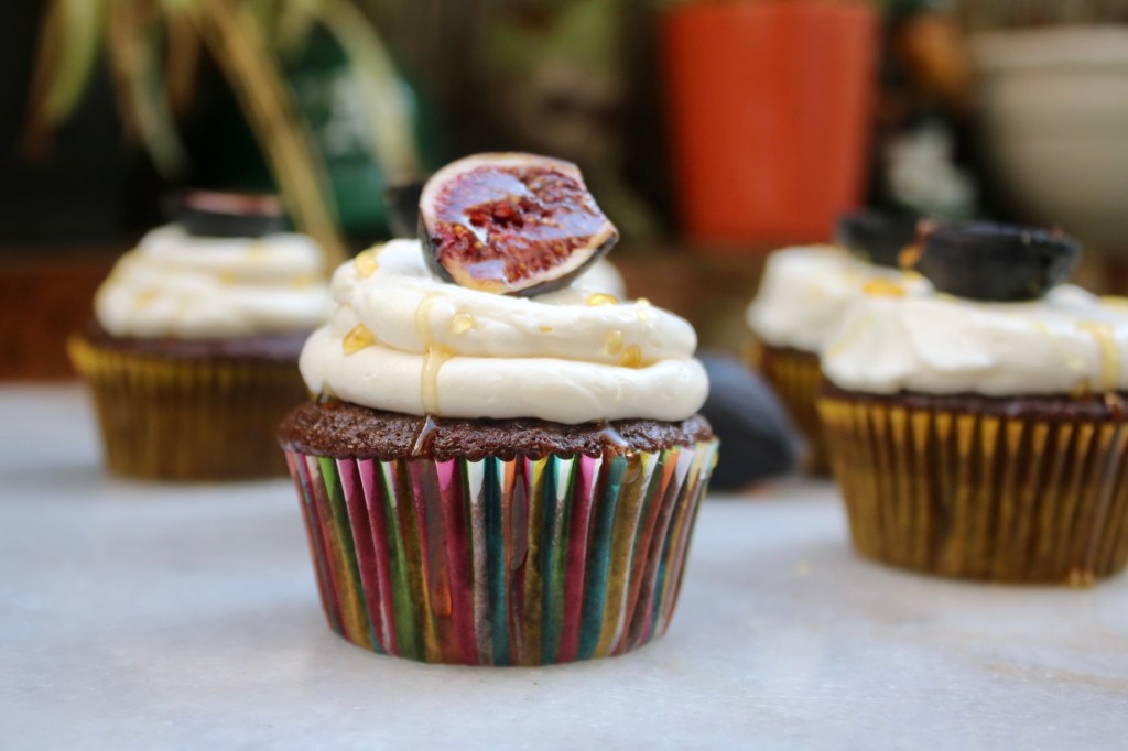 A pile of fresh figs inspired this first bake back after a month abroad! Another chocolate cupcake, I know, but it’s truly impossible to have too much chocolate cake.