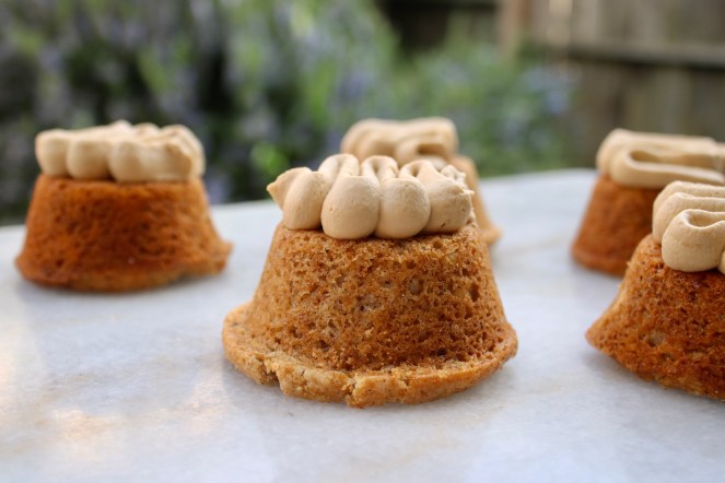 Yep those are cardamom walnut muffins masquerading as cakes with fancy mascarpone hats! The discarded muffin tops made the perfect snack sandwiched with the extra coffee mascarpone cream.