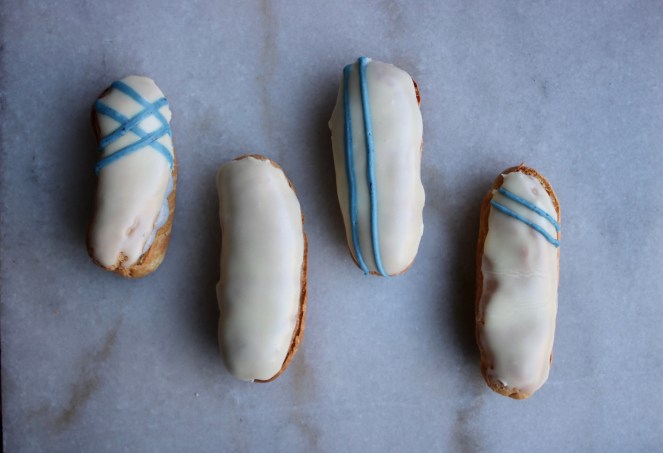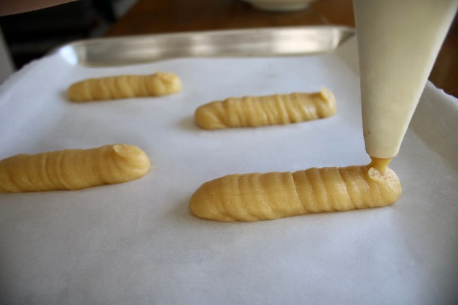 There’s always one awkward cream puff amongst the éclairs, since I can’t bring myself to throw away any of the dough.