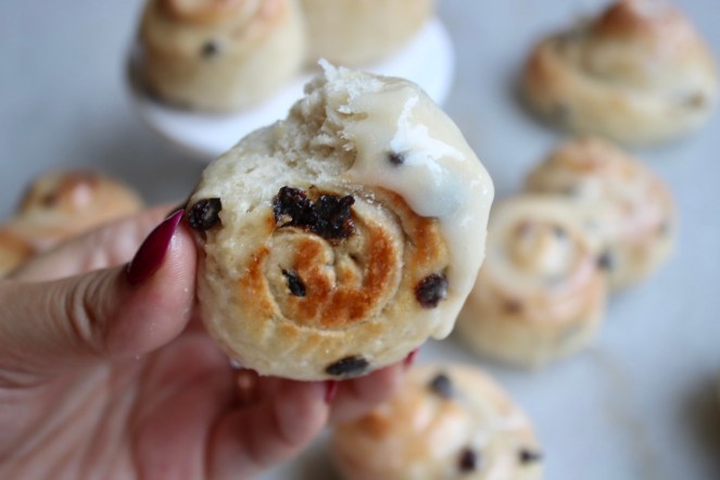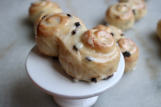 I know you shouldn’t cut into bread while it’s still warm, but have you ever had to resist a table full of warm iced buns? They’re very persuasive.