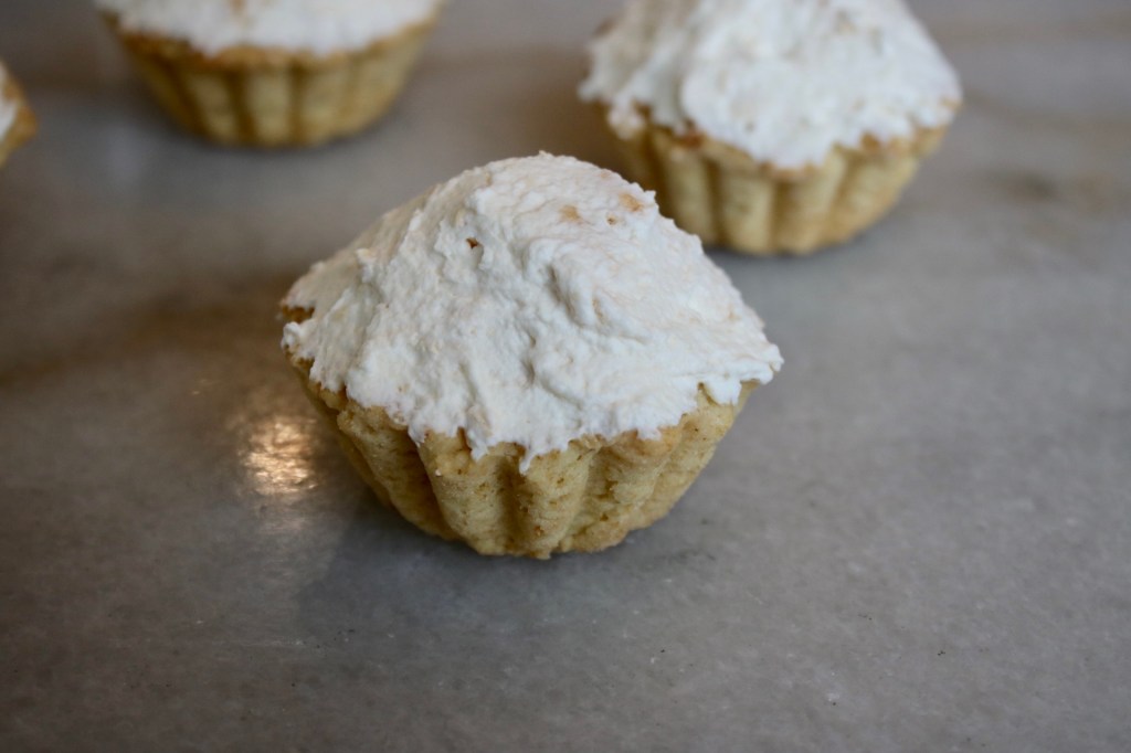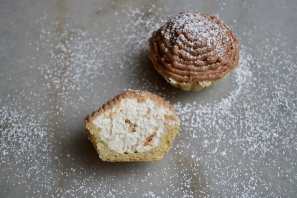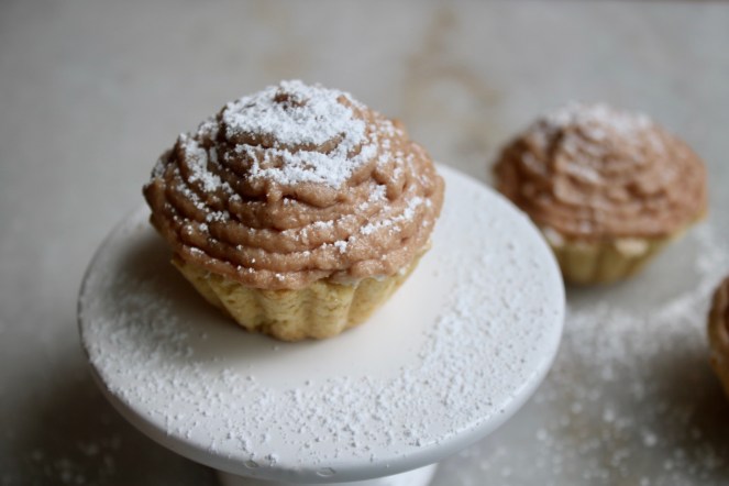 Snow capped mountains of chestnut and meringue-studded chantilly cream. # 315: Mont Blanc Tartlets