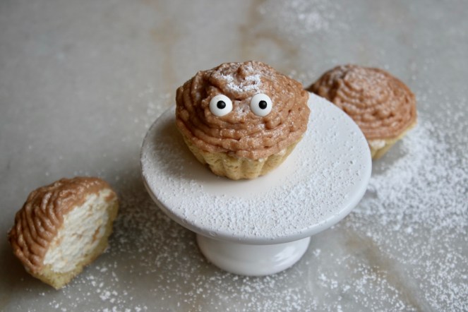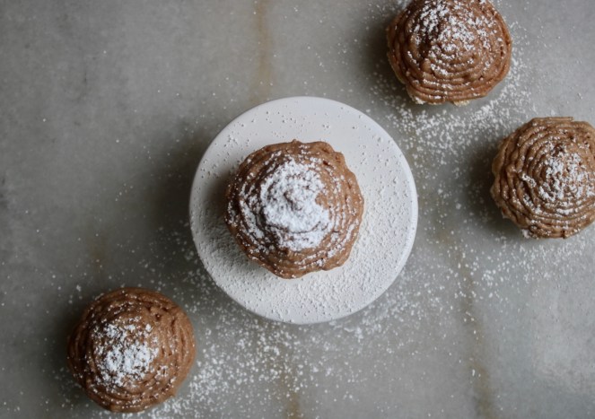 Ok so we took a left turn into obscure French pastries this week. Welcome to the world of sugar-snow capped chestnut mountains. Making them tiny definitely turns the mountain inspiration ironic, but now you too can have a tiny version of the Alps in your kitchen!