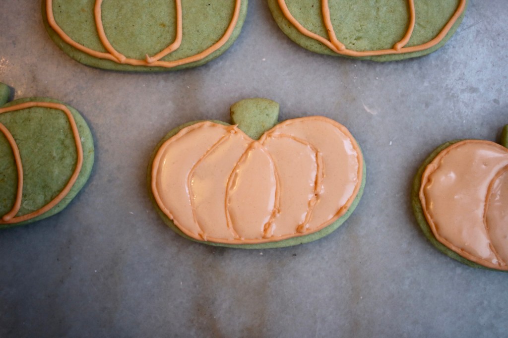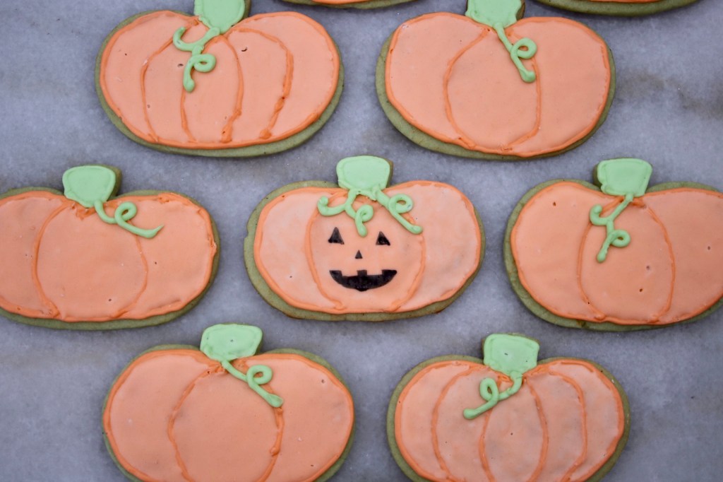 The edible ink pen wanted to crash through the delicate top layer of the icing, so I bailed after one Jack-o-lantern. I’ll have to experiment with other kinds of icing and writing directly on cookies.