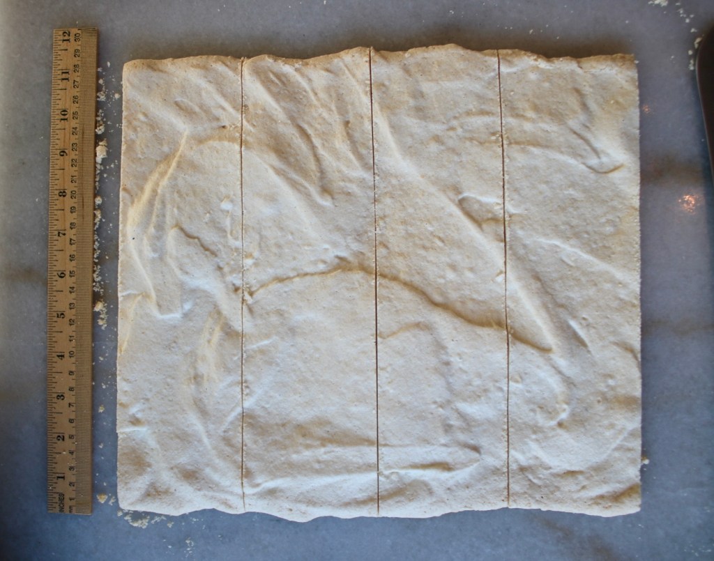 Gently scoring the lines in until it cuts through, whew. Whispering encouragement and compliments to the meringue helps. Sweet nothings, if you will.