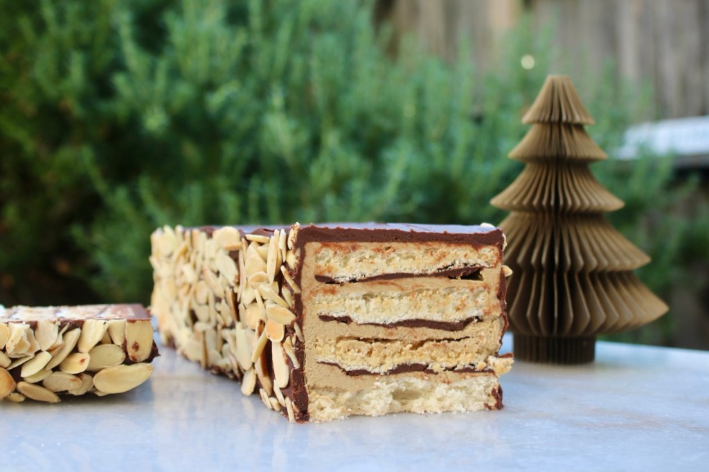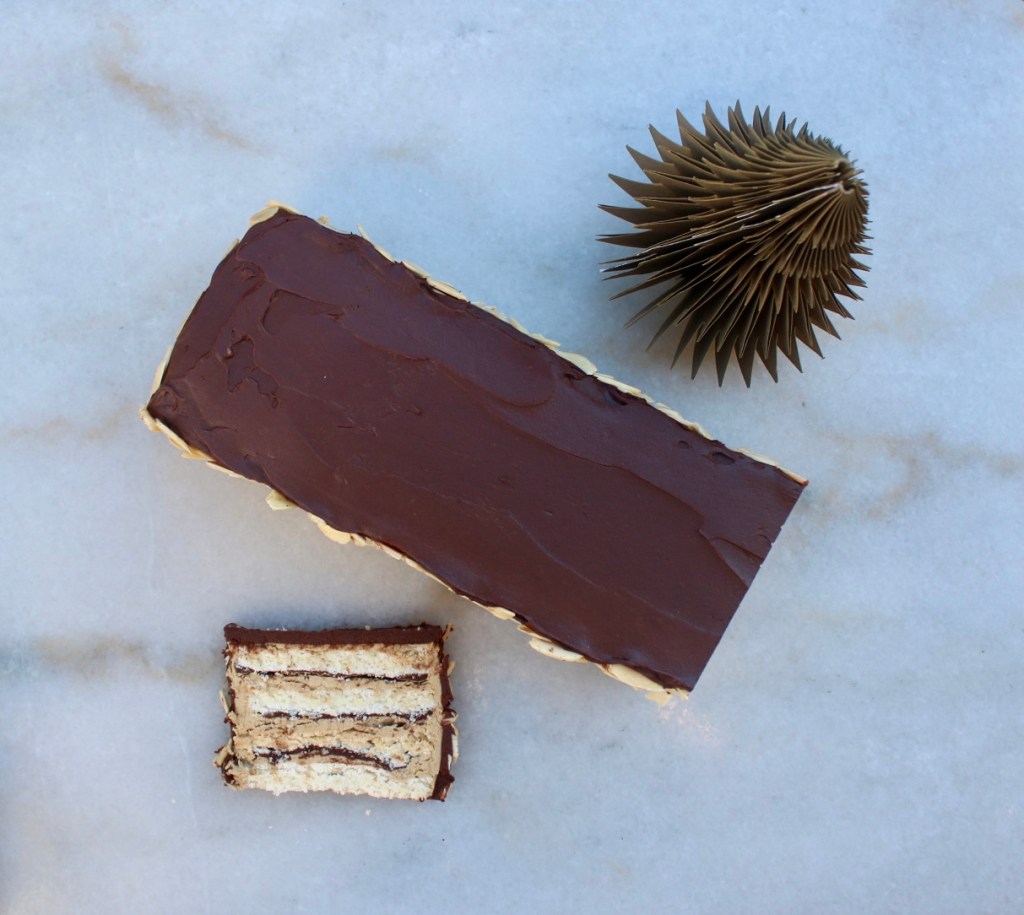 Merry Christmas Eve! Feeling festive with this giant rectangular ferrero rocher # 324: Chocolate Almond Dacquoise