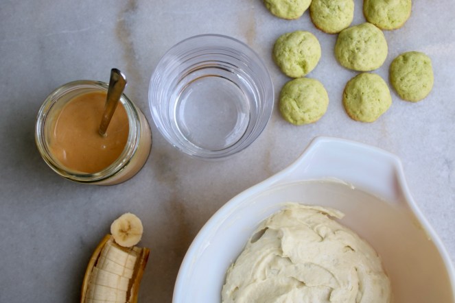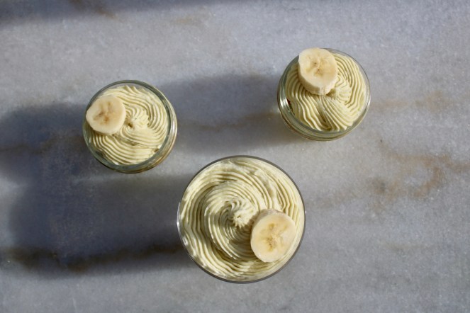 It’s traditionally made with layers of vanilla pudding, banana slices and crispy wafer cookies (looking at you, Nilla wafers), and topped with whipped cream. The wafer cookies absorb moisture from the pudding and take on a cake-like texture.