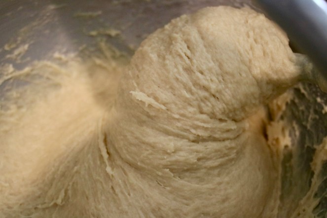 - Add all the ingredients to a stand mixer with a dough hook and mix on the lowest setting for a few minutes (or knead by hand until cohesive and slightly springy)