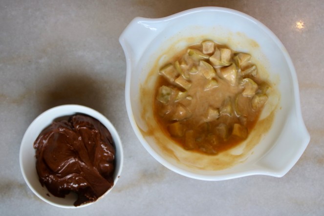 - A handful of frozen chopped apples from my parents’ backyard, simmered with cinnamon and lemon juice before mixing in the last of the miso caramel from last week’s bake.