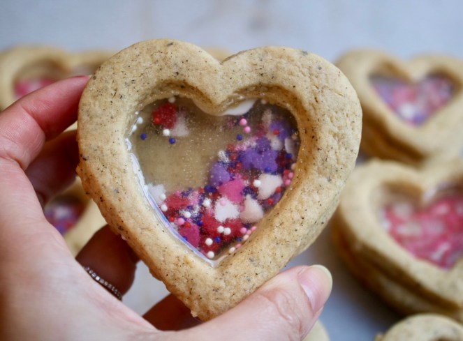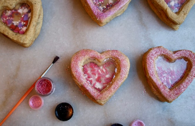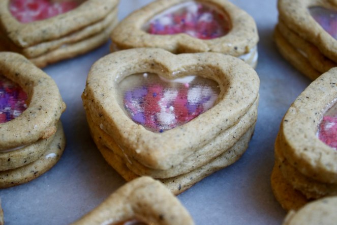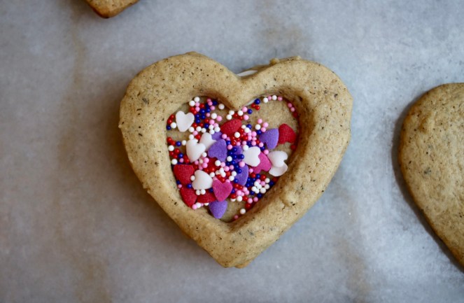Not as uniform as I was hoping for, but let’s just call it a metaphor for how everyone’s love is unique and endearingly imperfect. Next time (I know I’m crazy, but I probably will make these again! Maybe diamond-shaped?) I’ll use the cookie cutter to clean up the shape after it comes out of the oven.