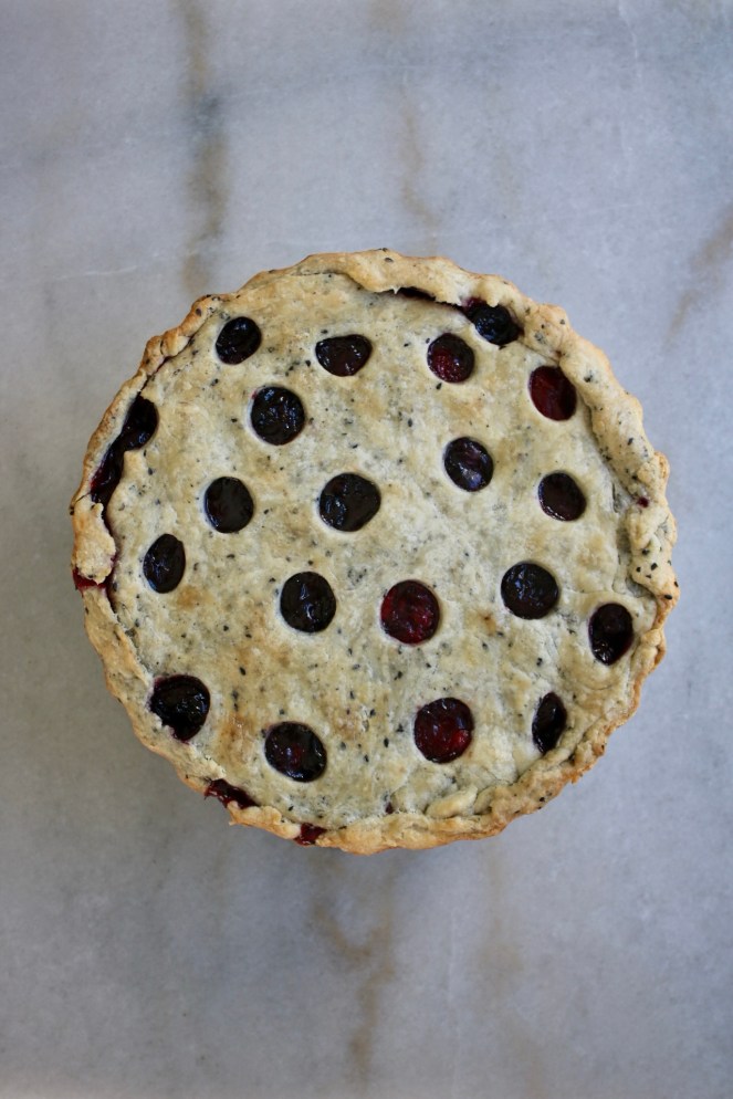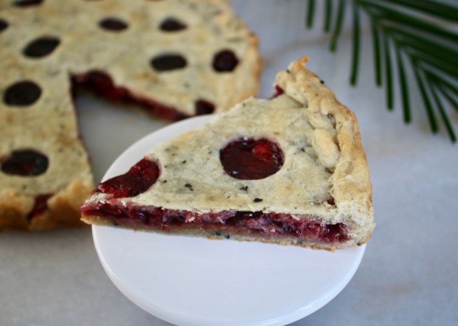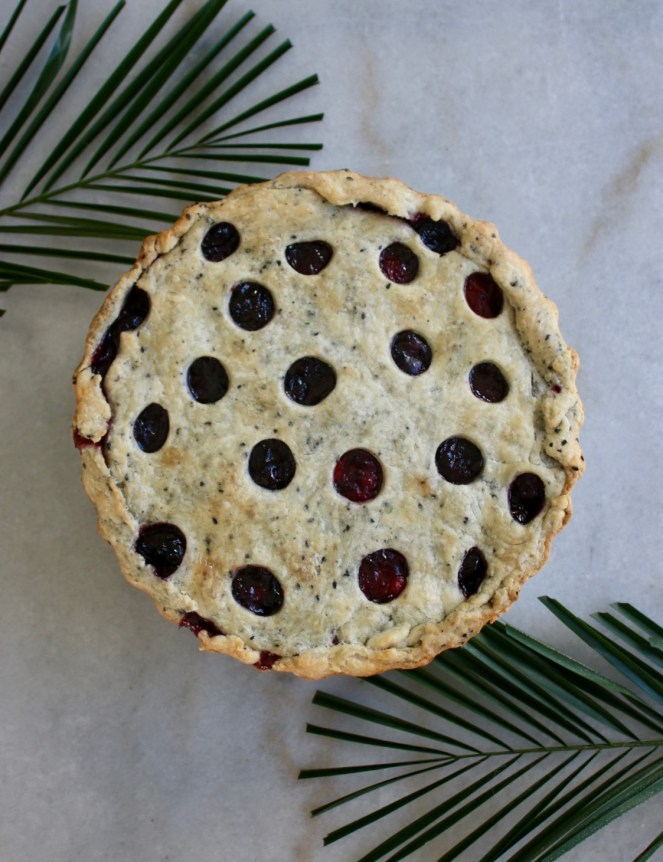 The original plan was to cut letters into the crust to spell “cherry” or “spring” but gravity and cursive cookie cutters nixed that real fast. Polka dots it is!