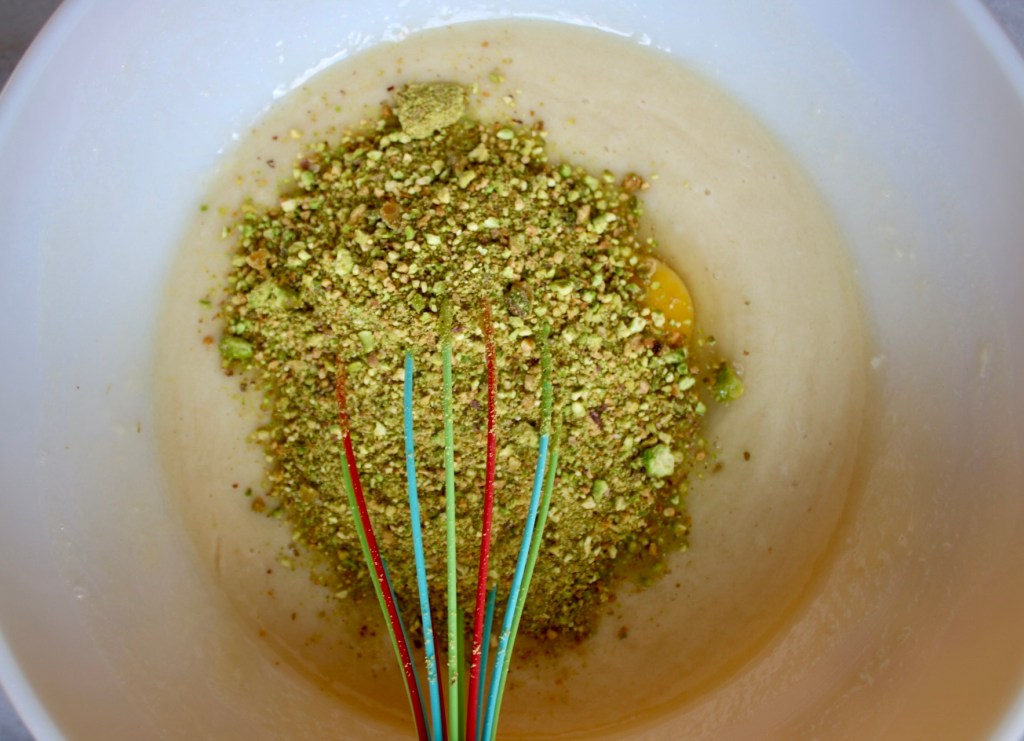 Fun fact, all the pistachio cake recipes I found involved almond extract in addition to ground pistachios. Almonds always be sneaking into desserts uninvited! I wonder if they’re just a strong baseline nut flavor that carries well through enriched batters. Or are almonds just delicious and we can’t resist adding them wherever possible? Definitely both.