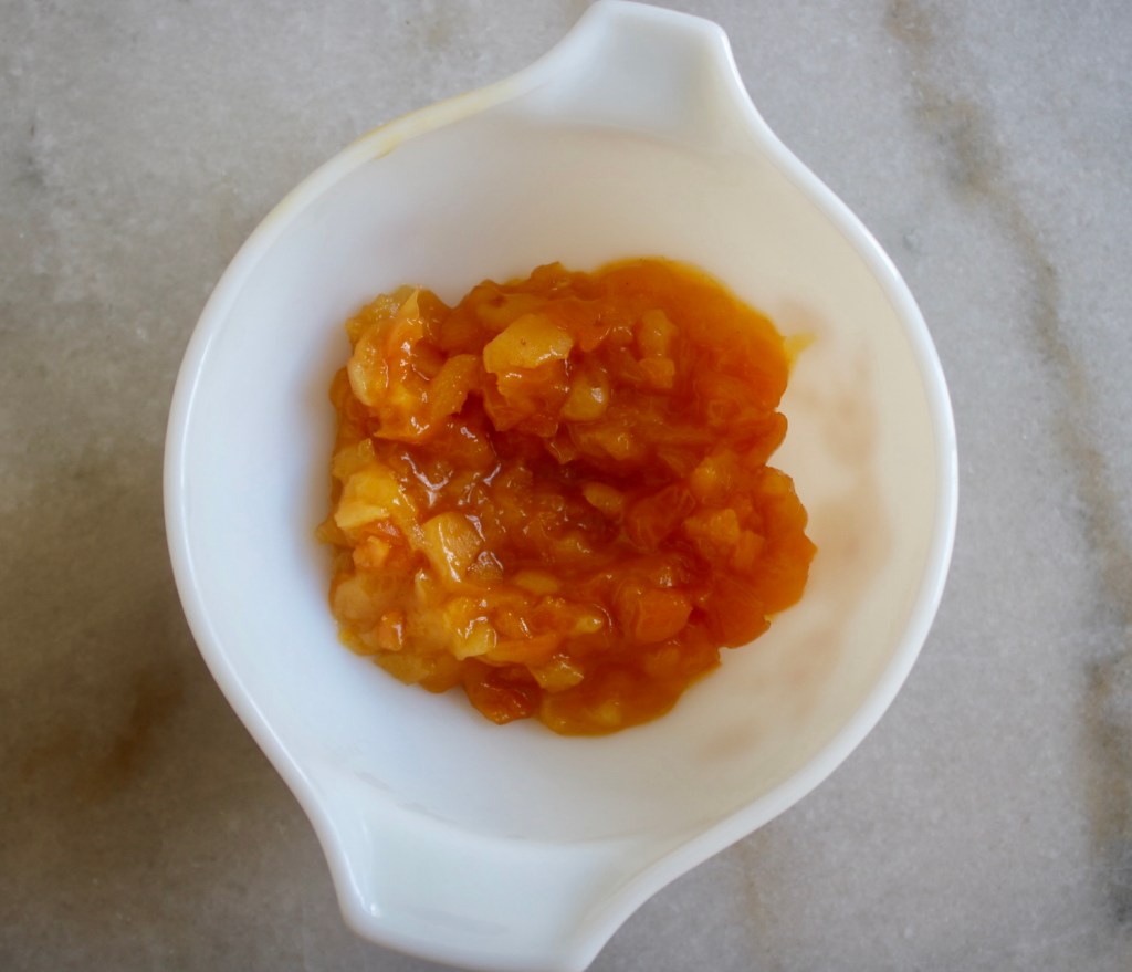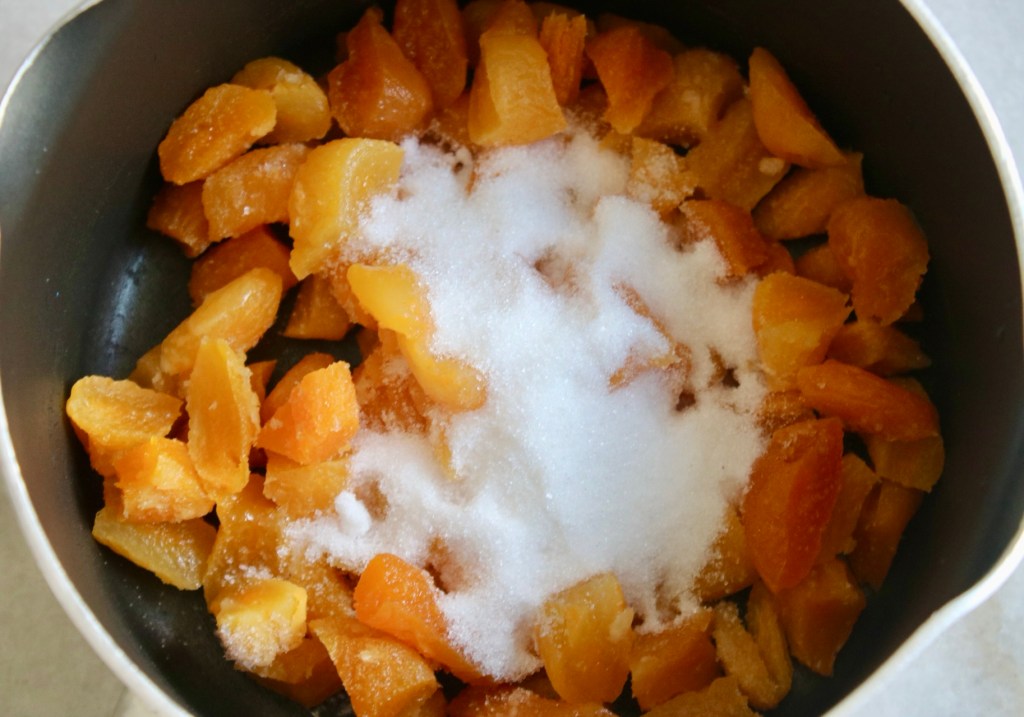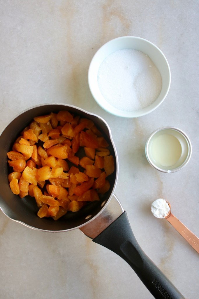 Because it was a last minute decision, these were a freezer find: dried apricots soaked in orange juice, and then frozen when I realized there’s only so many you can eat in a week before you need a break.