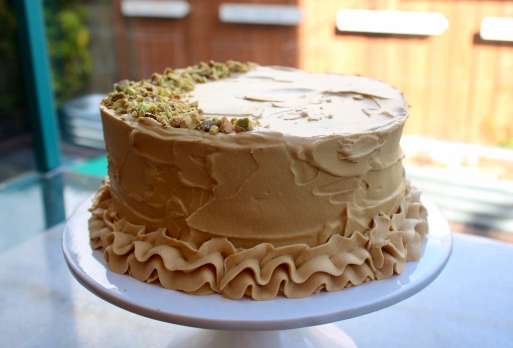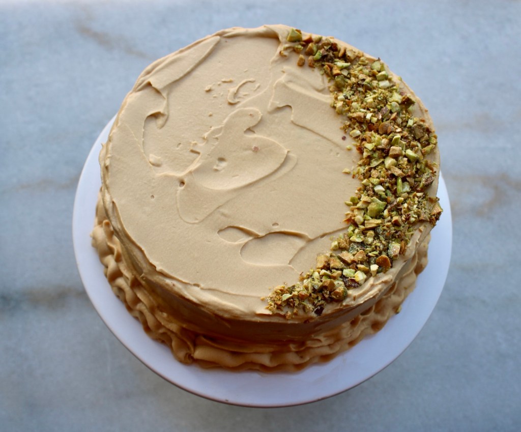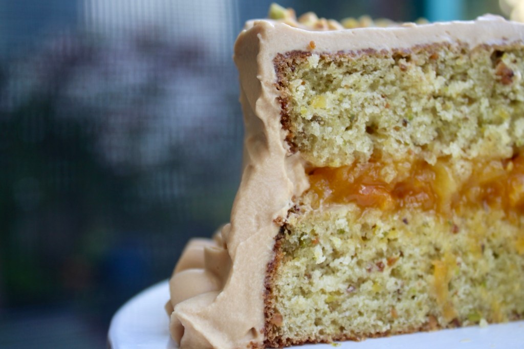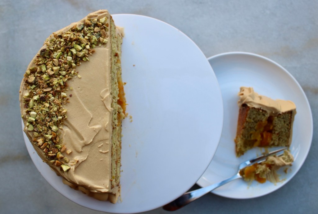 Trying whipped caramel frosting! AKA an excuse to make another cake. # 340: Pistachio Apricot Cake