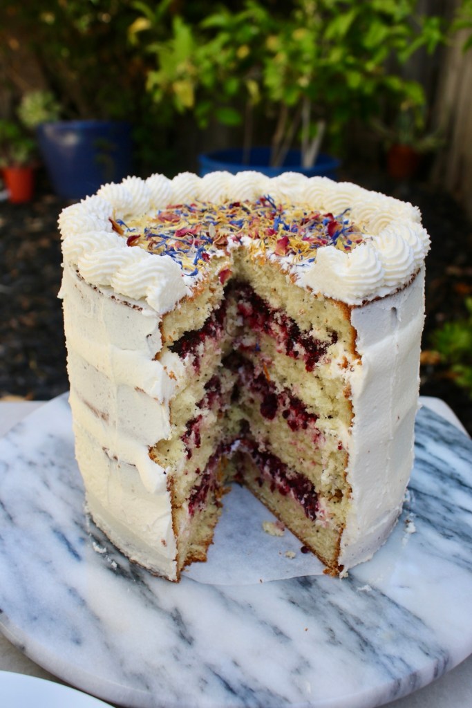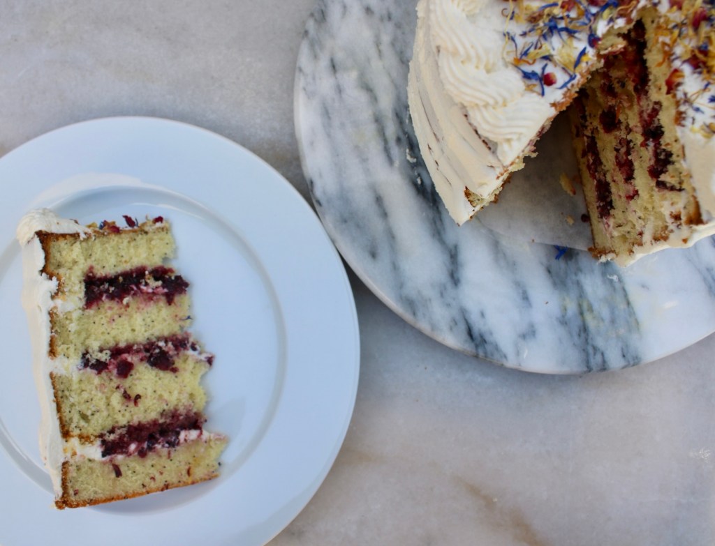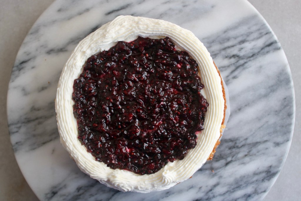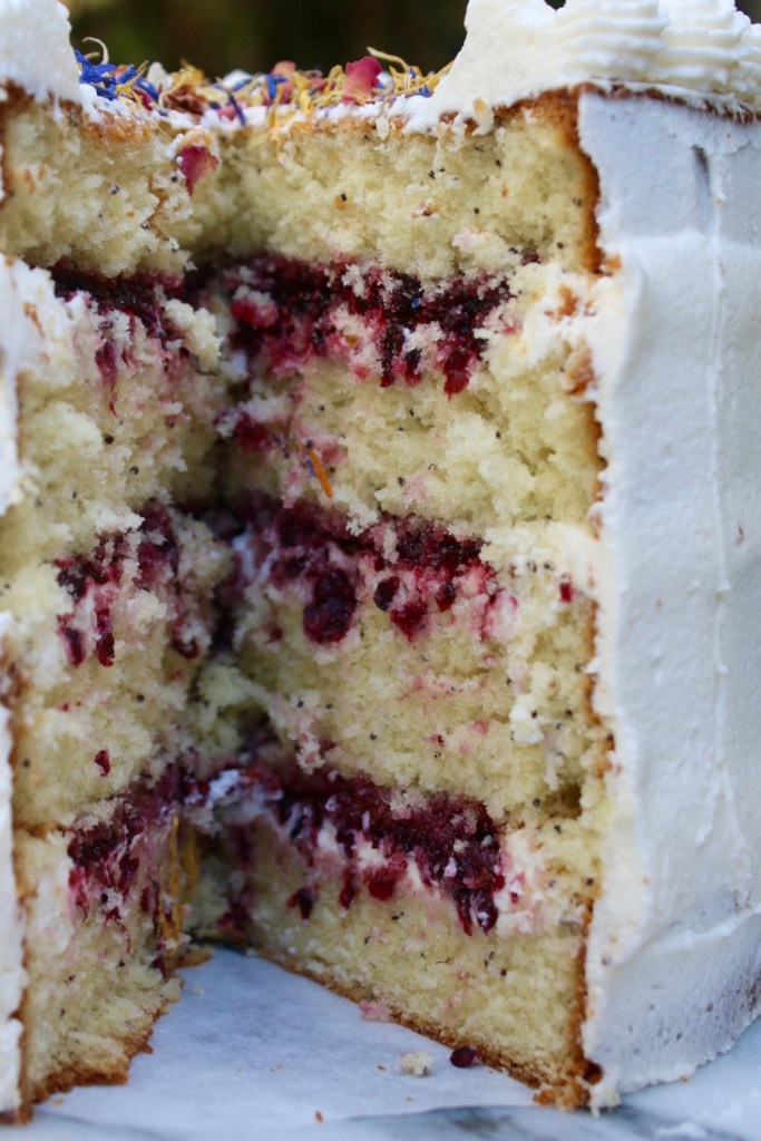 I was secretly proud of myself for not sneaking chocolate into this cake. I really wanted the jam flavors to shine! But of course my brain made a list of all the ways anyway (cocoa powder in the frosting, a dark chocolate ganache layer, mini dark chocolate chips in the sponge instead of poppy seeds, cacao nibs as decoration and texture, etc.) and when I handed my mom a slice, she said, wait where’s the chocolate? Welp. Guess my constant chocolate debate isn’t so secret after all.