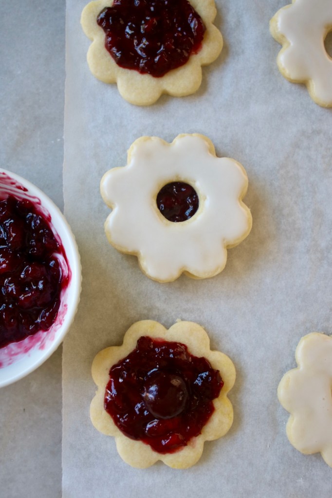 Jam to the edges or no? The eternal linzer cookie debate. Risk jam oozing or deal with uneven jam distribution? Reminder to self: no one else will notice because it’s a cookie and it’s yummy either way.