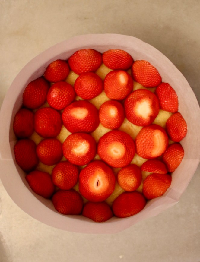 Went with simple and classy for the topping, and then realized it’s the same way I decorated the strawberry cream cake in 2021. Oops!