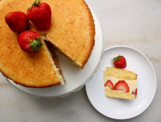 Named for the French word for strawberry, “fraise,” a fraisier cake is a fancy sandwich of fresh strawberries, créme mousseline (which I’ve renamed custard buttercream in my head), light sponge cake soaked with a syrup, and if you’re really feeling it, a thin layer of marzipan.