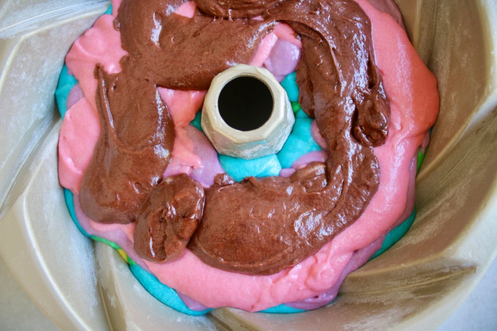 Is there anything happier than an 8-color cake? # 351: Rainbow Bundt Cake