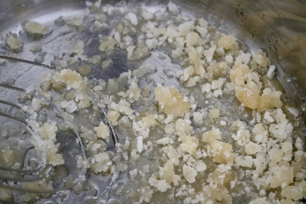 This is definitely the iffy stage when the sugar hasn’t decided if it wants to cooperate or not. Will it recrystallize as soon as it finishes melting or will it stay liquid and become best friends with butter and cream? This is also the point at which I turn to sweet-talking it into compliance.