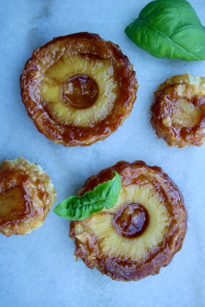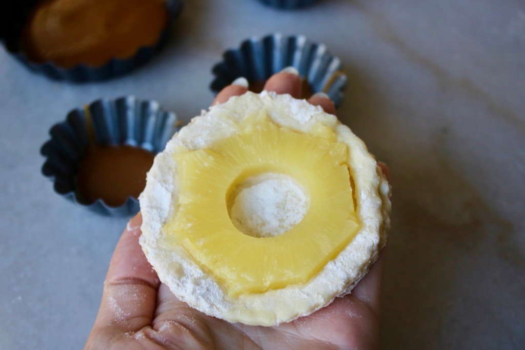 I saw a video of Chef Cedric Grolet making a much fancier version of these tarts and it stopped me in my tracks. Caramel? Check. Puff pastry? Yup. Sweet fruit hiding in the middle? You know it. They’re basically if pineapple upside down cake and a vol-au-vent had a baby.