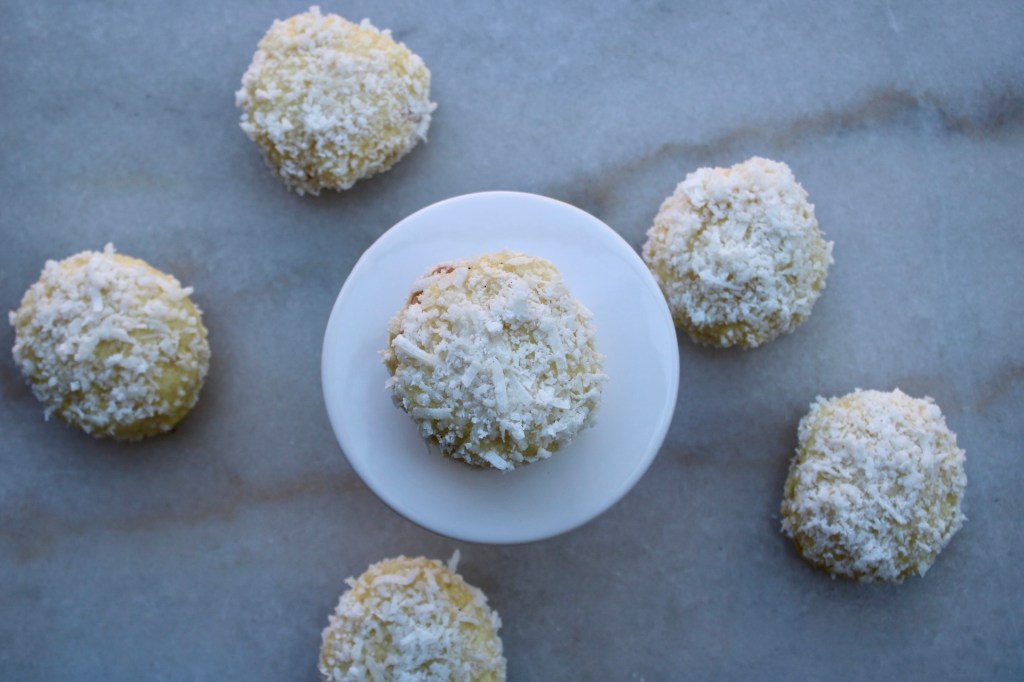 I blitzed the coconut in my spice grinder for more of a snowflake effect.