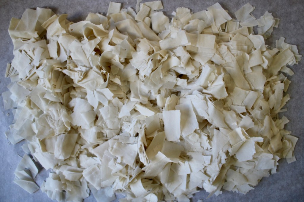 Counterintuitively, you actually want the phyllo dough to dry out! Like a giant pile of crunchy leaves.