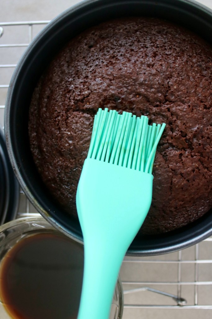 The coffee soak is a double whammy: more flavor (yum) and extra insurance against a dry crumb.