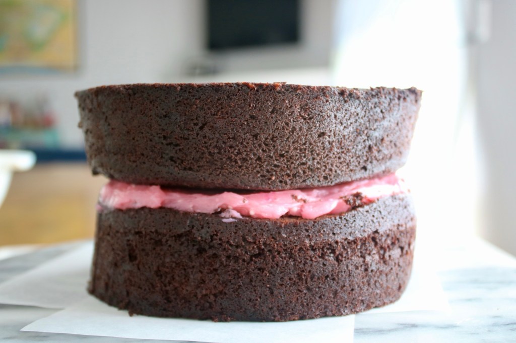 Sometimes you have the perfect amount pink sprinkle crunch Swiss meringue buttercream from a previous project in the freezer, and it feels like a sign. (A sign to eat more cake? Clearly.)