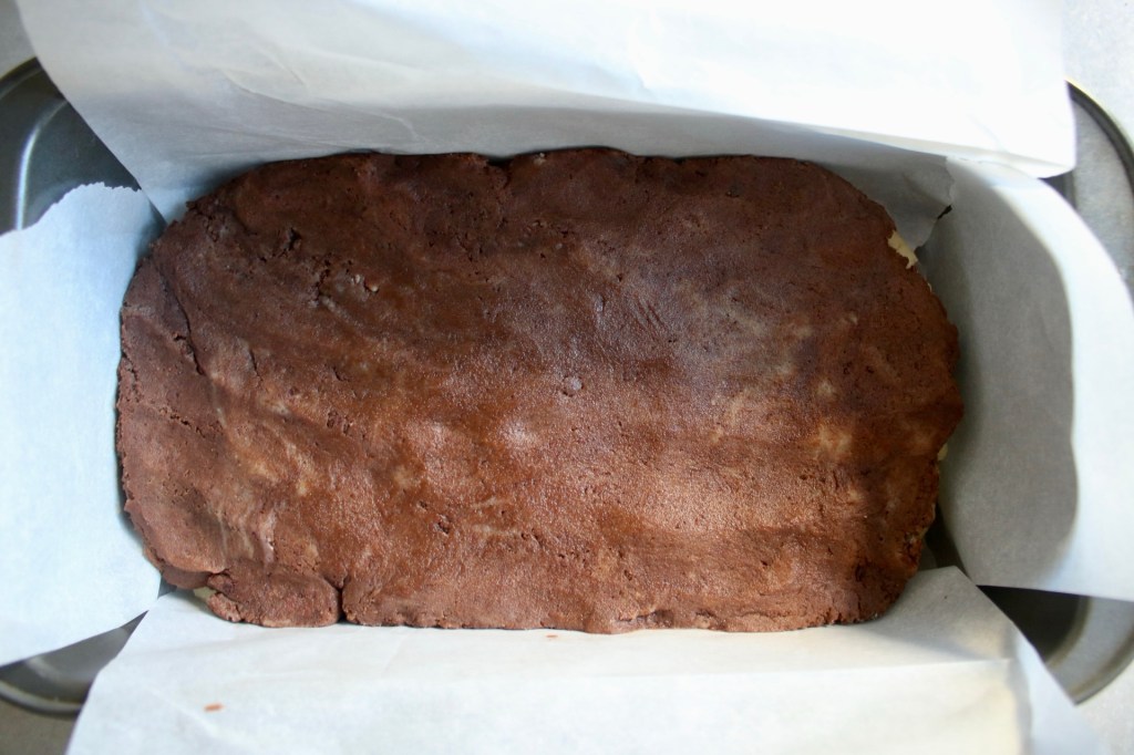 Layer one all tucked into a loaf pan for a fridge nap.